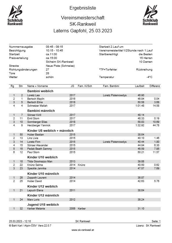 • Abschluss Schikurs des Schiklubs Rankweil